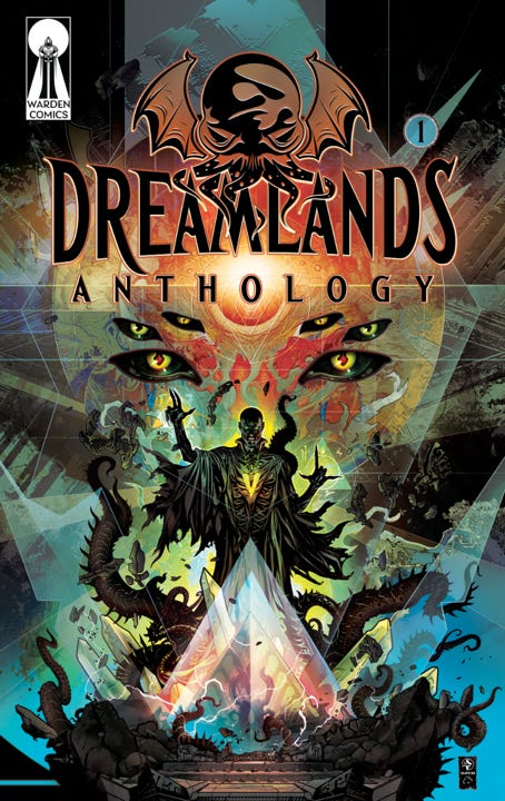 Hello, everyone! The Dreamlands Anthology from Warden Comics has officially launched on Kickstarter! It’s a cosmic horror anthology showcasing twenty different comics exploring Lovecraftian lore. The campaign began this past Sunday, March 1, and runs until April 1 with a goal of $5,000. It’s at almost $2K at time of writing, let’s keep the momentum going!